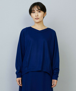 構築的なバックスタイルも魅力のウールカットソー素材。